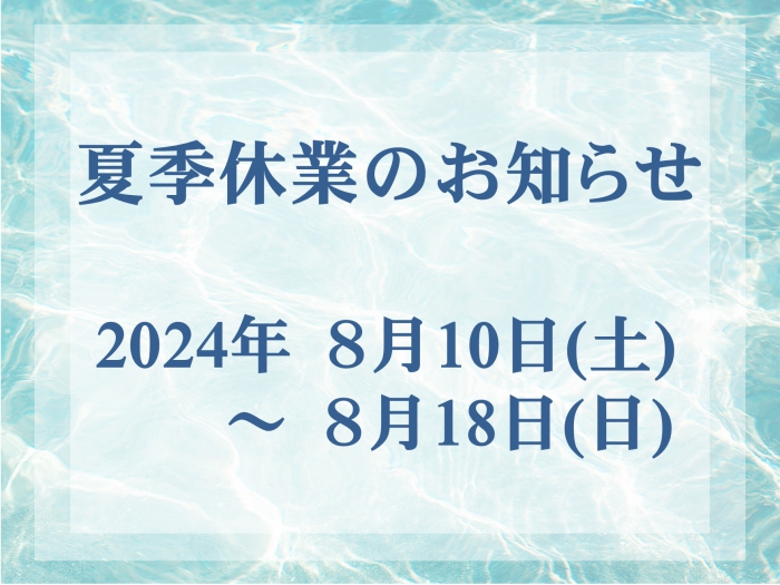 お知らせ(ニュース) 2024.07.22 夏季休業のお知らせ 拝啓 毎々格別のご愛顧を賜り、厚く御礼申し上げます。 弊社の夏季休業日についてご案内申し上げます。 お得意先各位には何かとご不便をおかけするものと存じますが、 何卒ご理解をいただきご協力賜りますようお願い申し上げます。 ◆2024年夏季休業期間◆ 8月10日(土)~ 8月18日(日)※8月19日(月)より通常業務とさせていただきます。 前のページに戻る