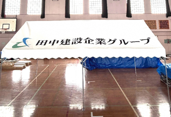 今年の青の煌めき国スポ・障スポ開催に伴い、田中建設企業グループより屋形テント2張を寄贈いたしました。
